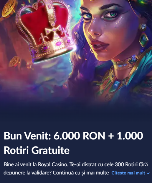 Dacă ești un jucător nou, nu rata Bonusul de bun venit Royal Slots, care include fonduri suplimentare, rotiri gratuite și acces la jocuri online cu RTP-uri mari. Acest pachet este conceput special pentru a-ți oferi o experiență de început captivantă și profitabilă, astfel încât să te bucuri de cele mai bune oportunități încă de la primul joc.