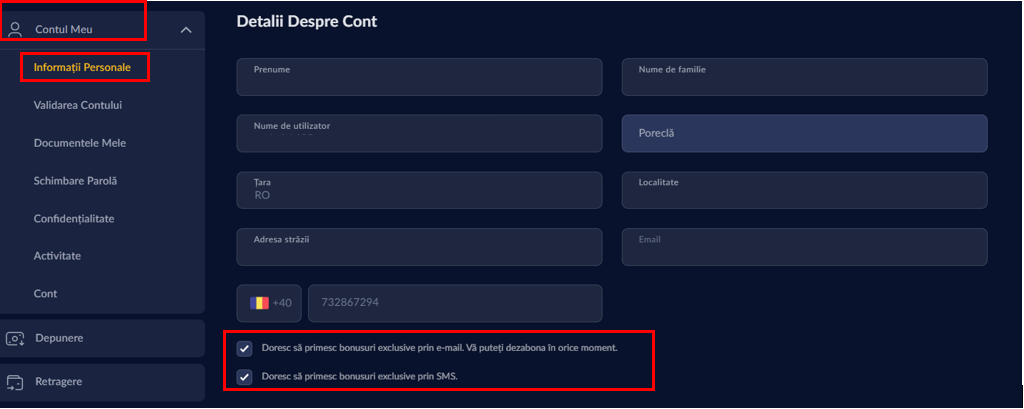 Pentru a te asigura că vei fi la curent cu toate bonusurile și ofertele disponibile, este necesar să fii abonat la comunicările de Marketing Royal Slots În cazul în care nu ești deja abonat, poți face acest lucru din secțiunea Meniu – Profilul Meu – Informații Personale.