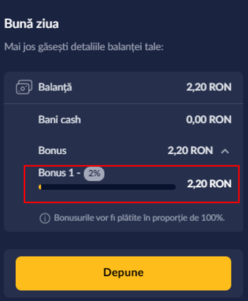 Solicitarea unei retrageri înainte de îndeplinirea condițiilor de rulaj va anula atât valoarea bonusului, cât și câștigurile aferente acestuia.